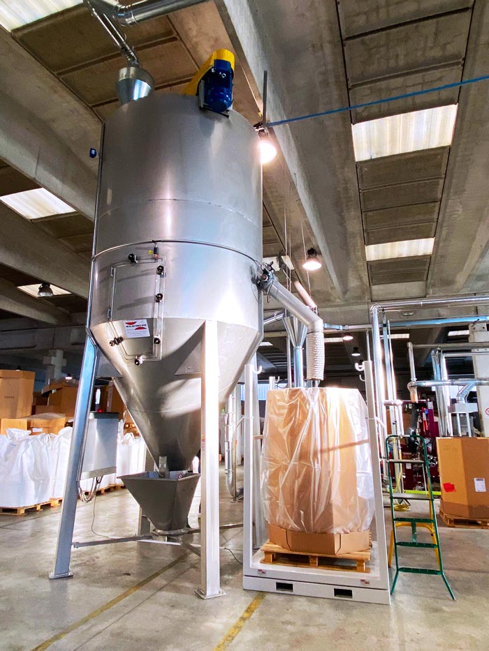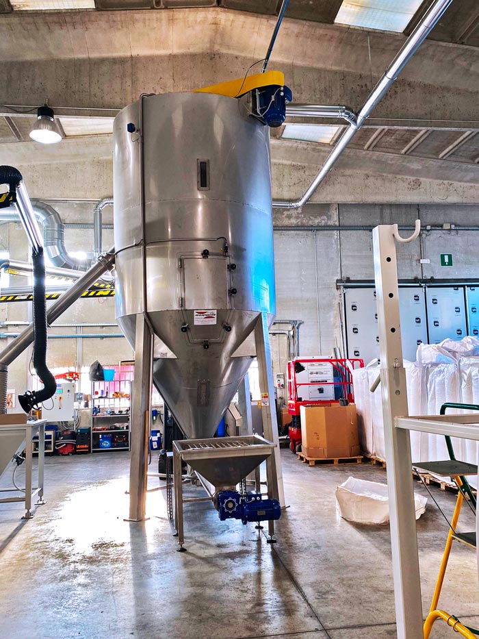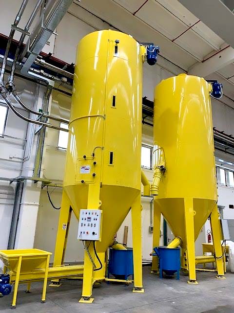 Vertical mixers are available in different sizes and capacities, ranging from 500 litres up to 150,000 litres (150 cubic metres). Installed powers vary depending on the size of the machine and the product to be mixed. Today, with the evolution of plastic products, the market demands products that are more and more packable, heavier and more difficult to mix. By increasing the power of the engines, it is possible to achieve mixes that would otherwise not be possible.